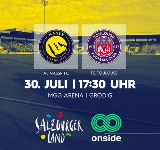 Das SalzburgerLand wird einmal mehr zur Bühne für internationalen Spitzenfußball: Heute um 17:30 Uhr trifft der saudi-arabische Topklub Al Nassr FC mit Weltstar Cristiano Ronaldo in einem mit Spannung erwarteten Testspiel auf den französischen Erstligisten Toulouse FC. Austragungsort ist die MGG Arena in Grödig. Spannend allerdings die Frage, ob der Superstar denn wirklich aufläuft.