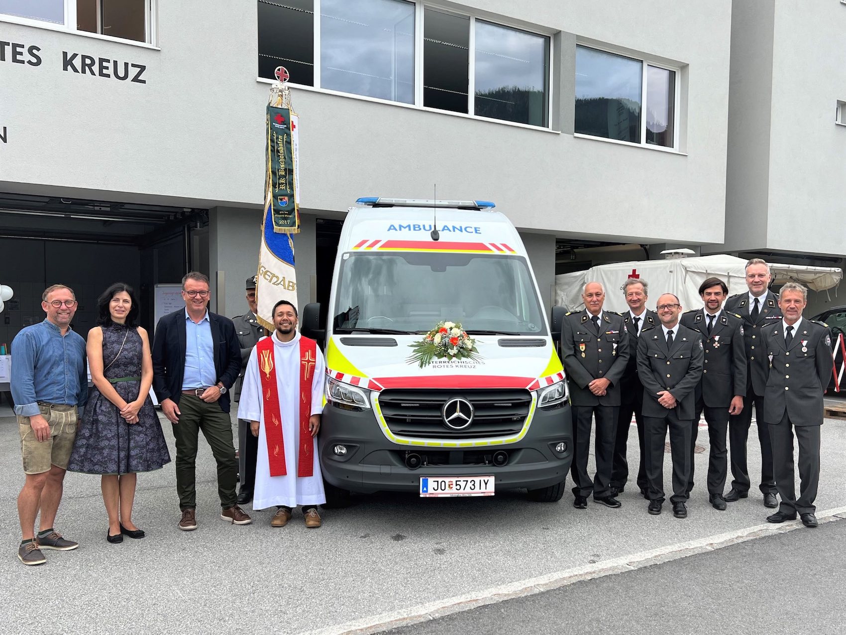 Gemeindepfarrer Edwin Reyes weihte den neuen Rettungswagen in einer feierlichen Zeremonie. Der Mercedes Sprinter kommt nun in den Versorgungsgemeinden Bischofshofen, Mühlbach und Pöham zum Einsatz.