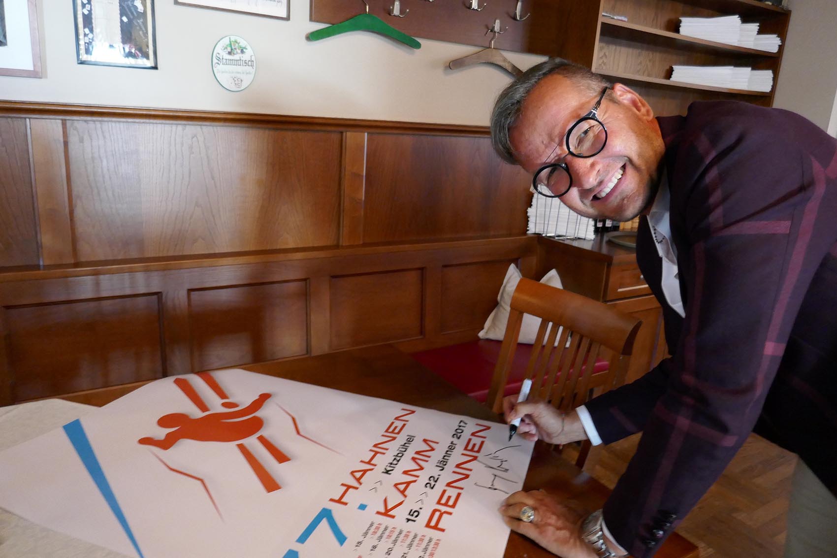 „Die Jury hat sich für dieses Plakat entschieden, weil es eine reduzierte Klarheit darstellt“, so der Vorsitzende der Hahnenkamm-Rennen Michael Huber. „Es wird die Aufmerksamkeit auf das Wesentliche, den Hahnenkamm-Rennen 2017, gelenkt“.