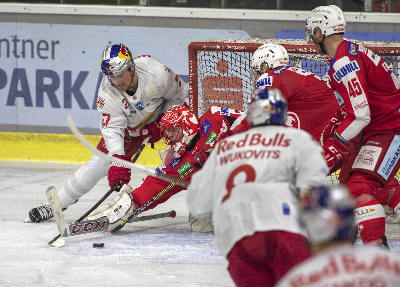 Der EC Red Bull Salzburg gewann den Klassiker der bet-at-home ICE Hockey League gegen den EC-KAC mit 5:4 und feierte den fünften vollen Erfolg in Serie. In der attraktiven und trefferreichen Partie legten die Salzburger in Klagenfurt im ersten Drittel vor und gaben die Führung trotz höchst brisanter Schlussphase nicht mehr ab. Für die Red Bulls trafen Peter Schneider mit seinem dritten Saison-Doppelpack, Jan-Mikael Järvinen, Benjamin Nissner und Thomas Raffl. Die Red Bulls haben damit im insgesamt 12. Spiel nacheinander gepunktet und nehmen die verdiente Tabellenführung mit in die Weihnachtsfeiertage.