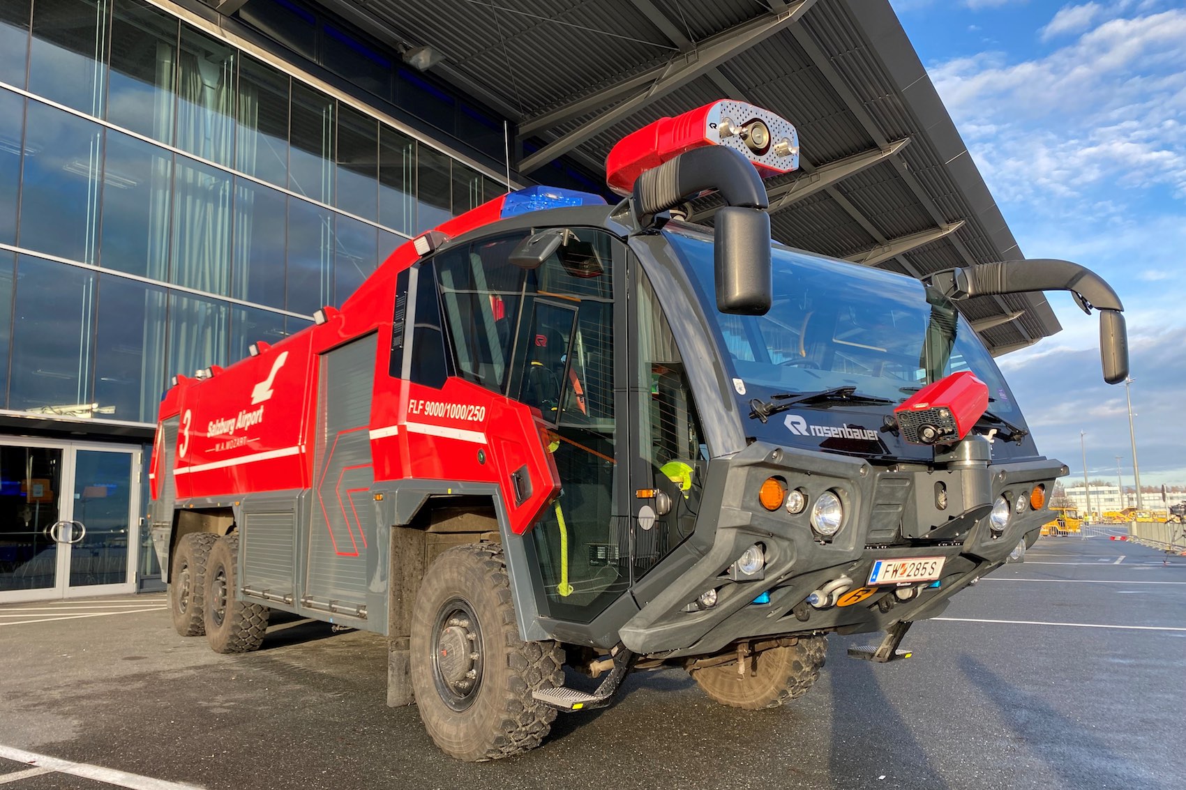 Polizeihubschrauber und das Löschfahrzeug „Panther“ der Flughafenfeuerwehr das waren gestern die Lockmittel für die nächste große Impfaktion am Salzburg Airport.