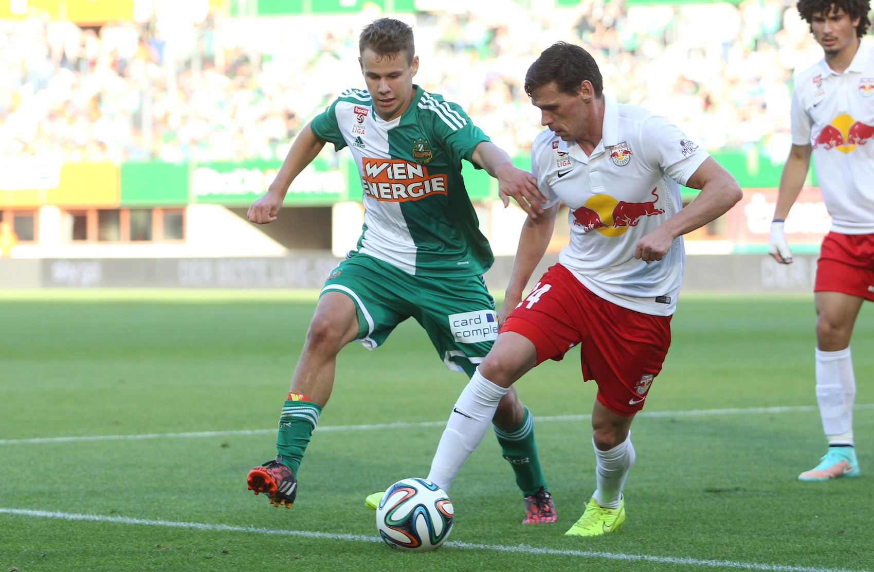 Kurz nach dem Wechsel wurde Sabitzer ein Treffer wegen Abseits aberkannt. Danach flaute die Partie etwas ab. Nach einer Stunde vereitelte nach einem Soriano-Schupfer die Latte das 3:0, fünf Minuten später sah der Admiraner Wessely Rot (65.). Die Bullen hatten zehn Minuten vor dem Ende aber Pech, als Sabitzer nur die Stange traf. Am Ende blieb es beim 2:0 für den Meister.