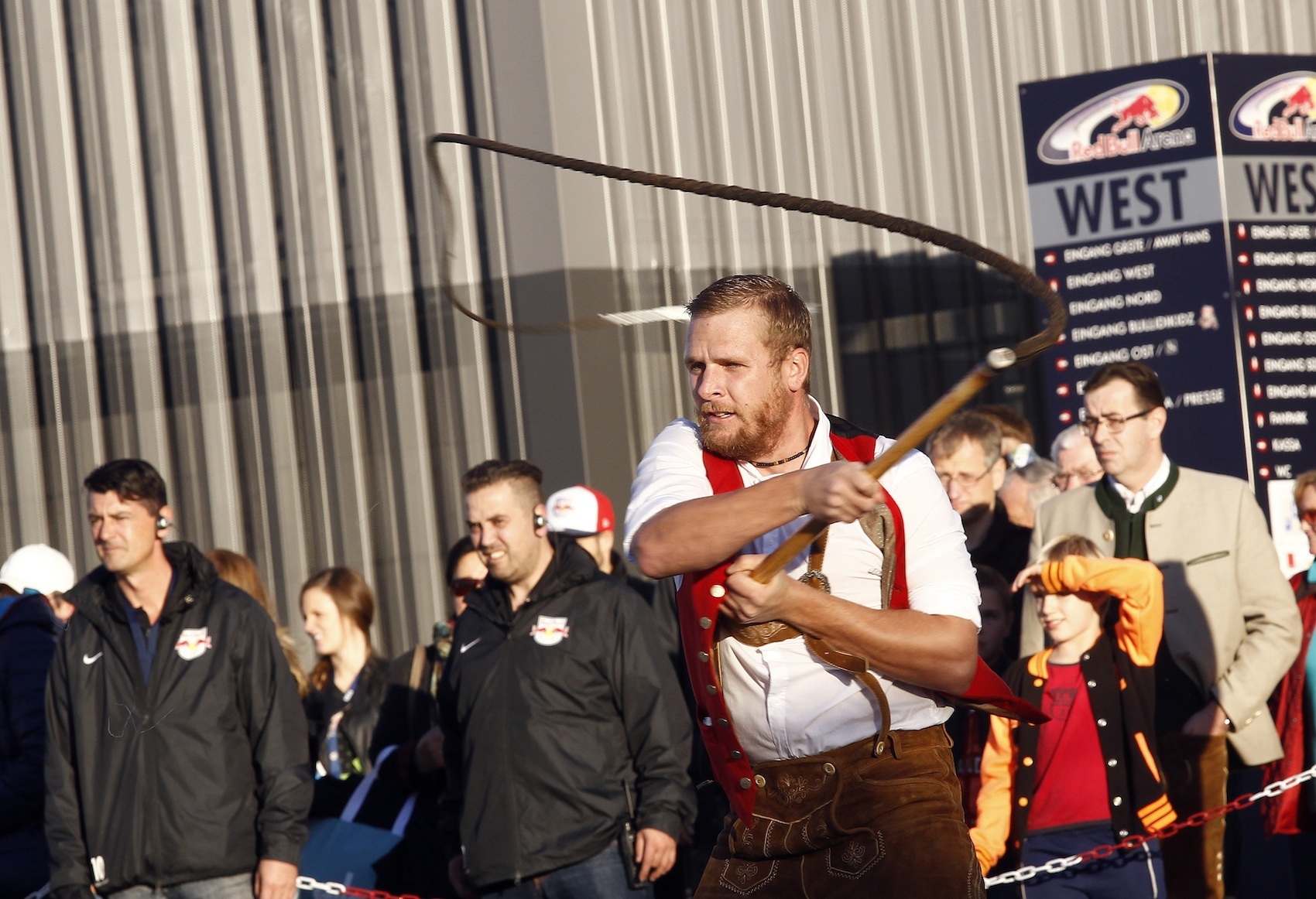 Bauernherbst in der Bullen Arena – auf der Tribüne blies die Trachtenmusikapelle Obertrum zum Marsch und am Spielfeld bliesen die Bullen den Riedern den Marsch.