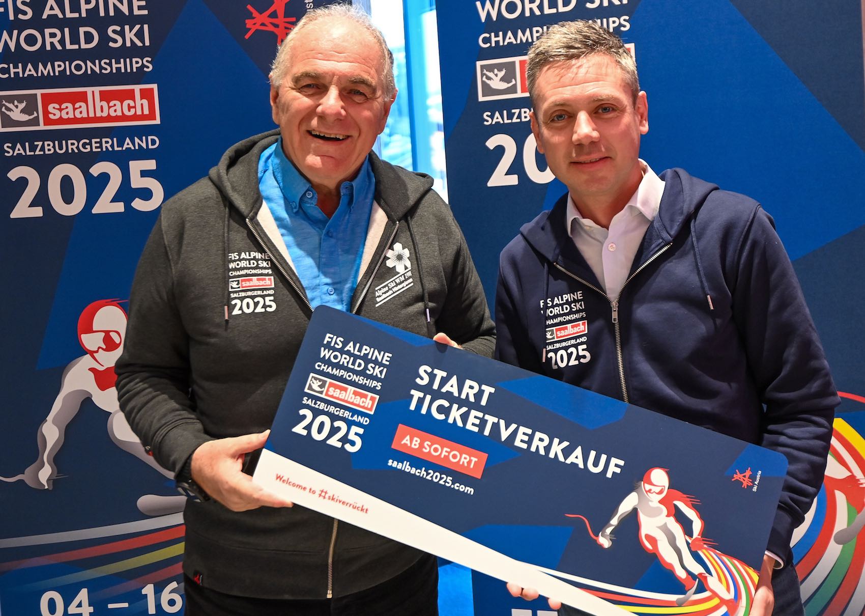 Die Vorfreude auf die FIS Alpine Ski Weltmeisterschaften 2025 in Saalbach wächst rasant, was sich auch im Ticketverkauf widerspiegelt: Bereits 50 Tage vor der Eröffnung sind 75.000 der insgesamt 150.000 verfügbaren Tickets für das Zielstadion verkauft – das entspricht rund 50 % der verfügbaren Plätze.