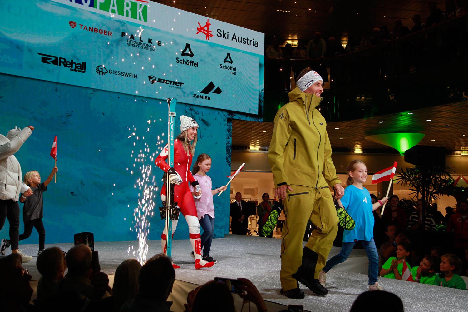 Bei der Präsentation im Europark auch mit dabei – Salzburgs Ski Legenden von der Saalbach-91-WM, Petra Kronberger und Thomas Stangassinger.”Unsere Aussrüstung damals war auch toll – wir waren recht auffällig, weil wir sehr bunte und knallige Farben hatten. Wir hatten damals einen asiatischen Ausstatter (Anm.: Asics), der es recht bunt liebte und damit fielen wir wirklich auf” erinnert sich Stangassinger.