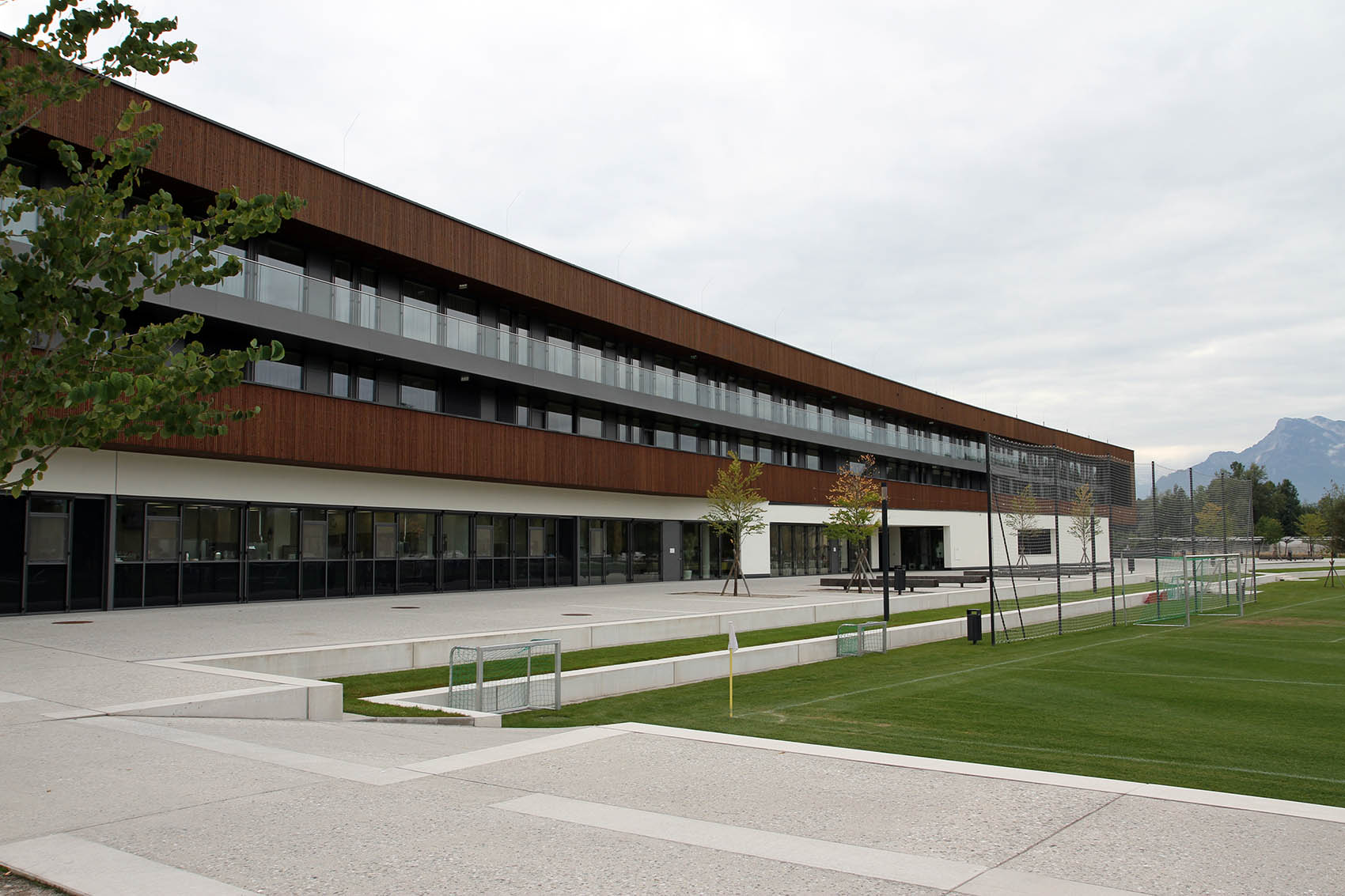 Insgesamt bietet die Akademie Platz für 120 Internat-Schüler. Die Infrastruktur der RED BULL FUSSBALL- UND EISHOCKEY AKADEMIE umfasst eine die Sporthalle mit 15.000 m² mit einem Indoor-Kunstrasenplatz, ein Eishockey-Trockenzentrum mit Rapid-Shot-Anlage, eine weltweit einzigartige Skatemill sowie einen Koordinationstrainingparcours. Auf insgesamt sieben Fußballfeldern kann das ganze Jahr über trainiert und gespielt werden.