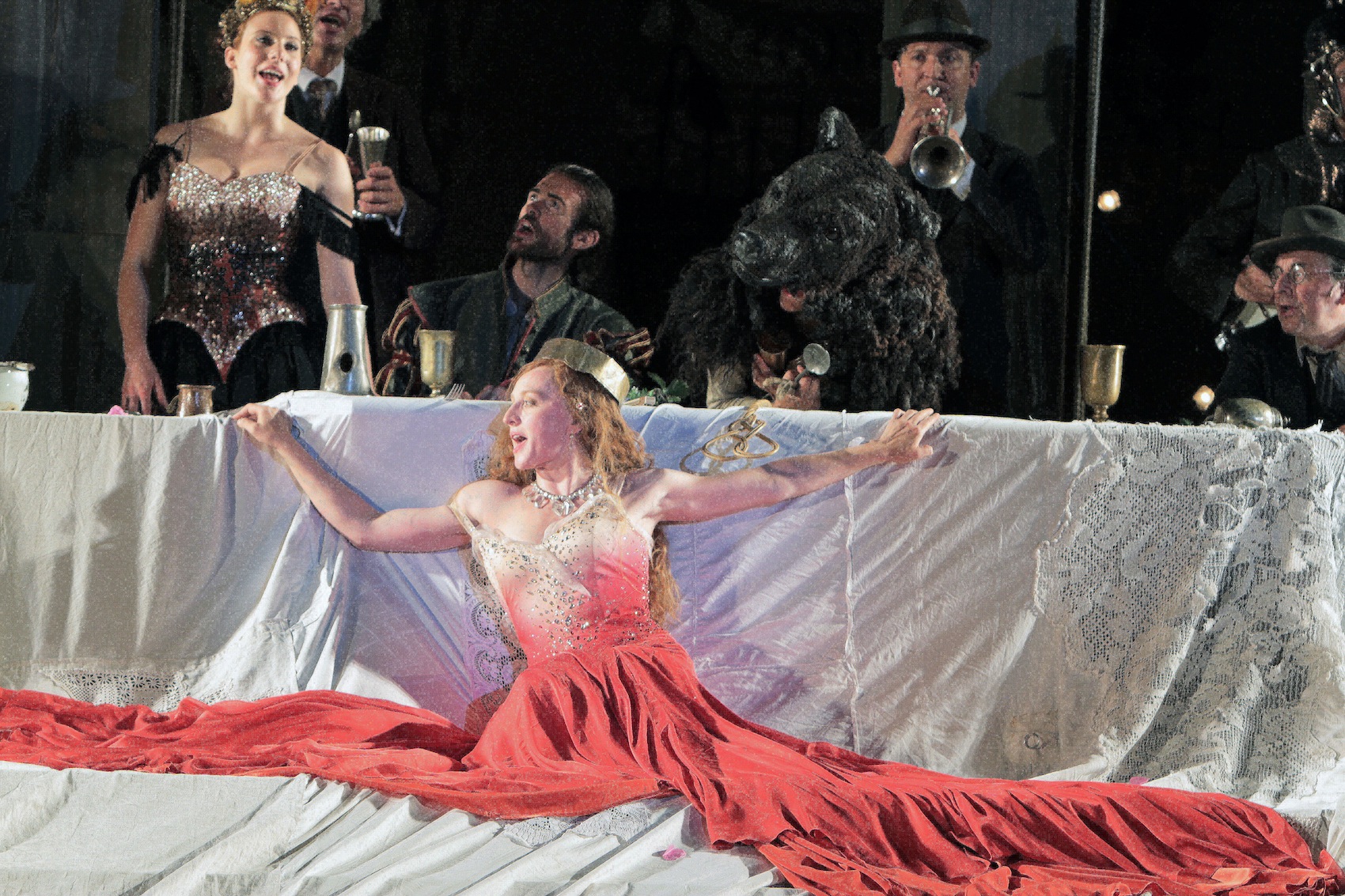 Ein verdientes Premierenfest feierte das „Jedermann“-Ensemble rund um „Jedermann“ Cornelius Obonya und „seine“ Buhlschaft Brigitte Hobmeier nach der gelungenen ersten Vorstellung im Stieglkeller.