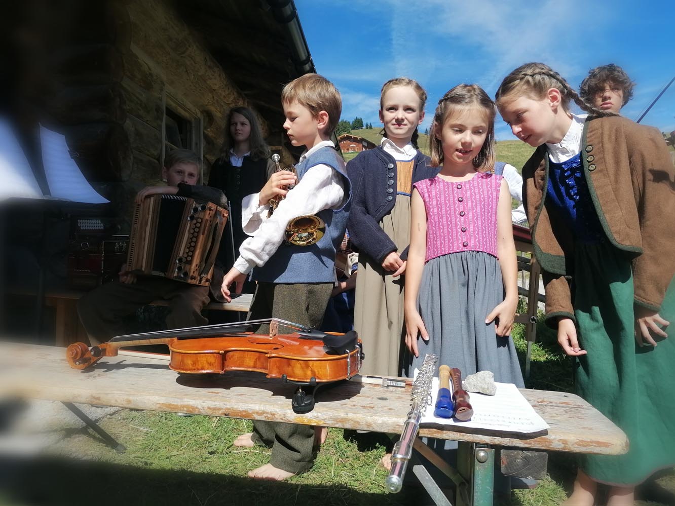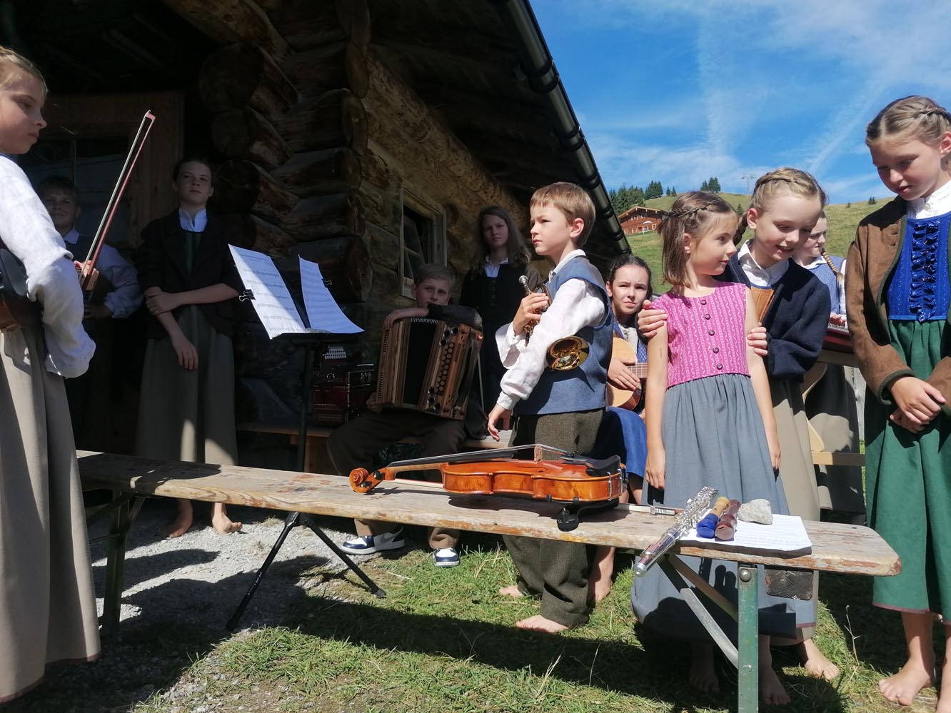 In diesem Jahr wurde das Betreuerteam durch die Aufnahme von 7 neuen Kindern besonders gefordert. „Wir kennen die Kinder nur vom Casting. Wie gut sie dann letztendlich wirklich am Instrument sind, sehen wir erst hier auf der Alm. Mit 7 neuen Kindern ist das eine ganz andere Herausforderung als mit 3 neuen Kindern. Aber die Kinder lernen von 0 auf 100 ihre Texte und Lieder“, erzählt Gudrun Köhl-Korbuly.
