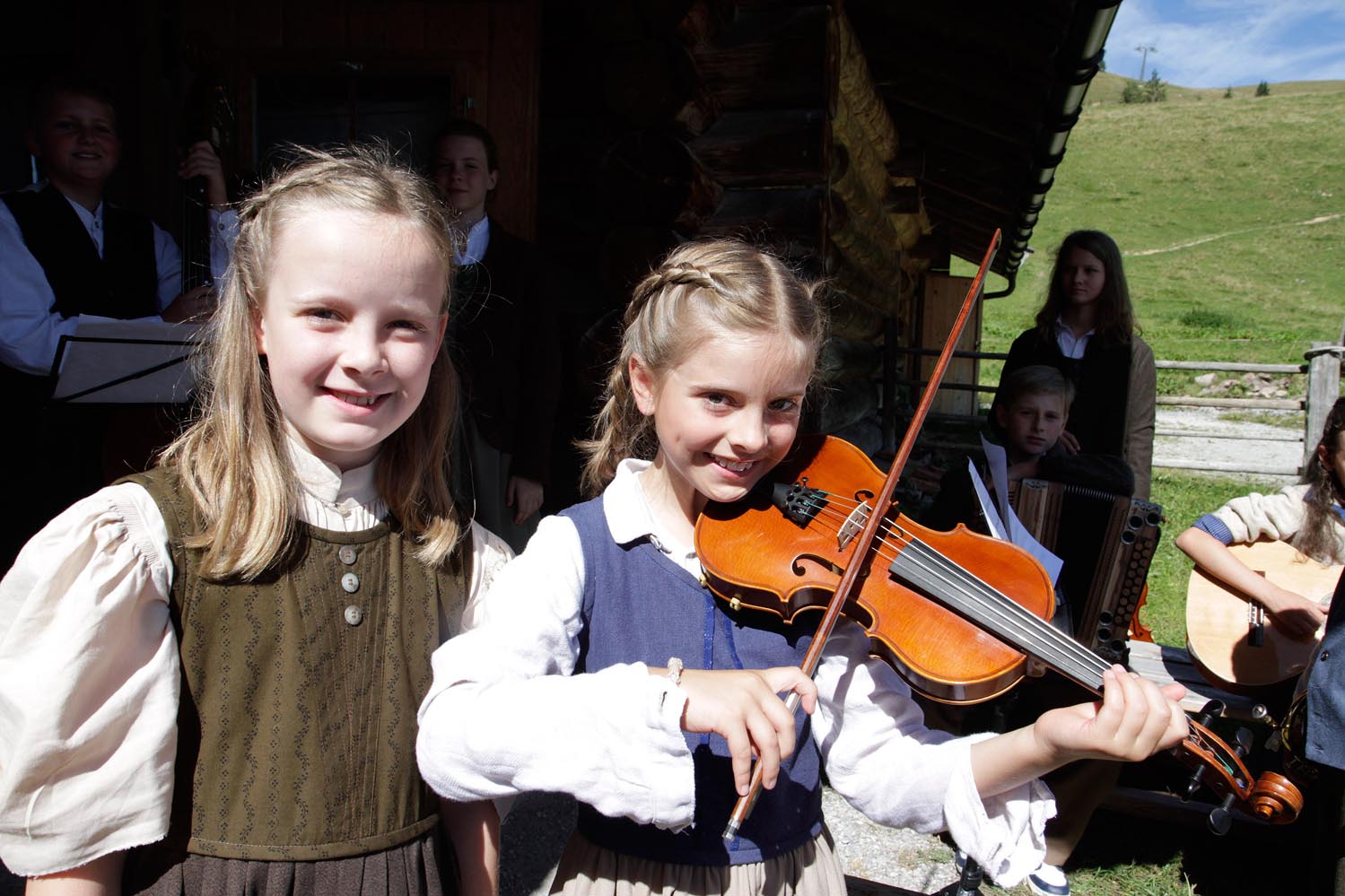 Lisa Brunauer (Gitarre/12 Jahre): "Heuer spiele ich wieder eine Hauptrolle und freue mich schon sehr darauf. Ich darf den blinden Hirten Jakob begleiten und muss Rücksicht auf ihn nehmen. Den Text habe ich auf der Alm schon gut gelernt, jetzt darf ich ihn nur nicht vergessen bis zu den Aufführungen."