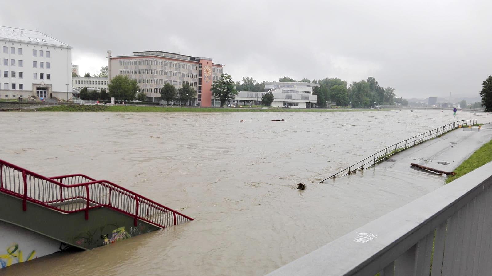 Es regnet nach wie vor im Bundesland Salzburg, teils stark. Bis zu 2.300 Feuerwehrleute waren in der Nacht und teils bis jetzt im Einsatz, und die Arbeit hört nicht auf. Aufgrund der aktuellen Wettervorhersage und der Wasserführung im Salzach-Oberlauf können laut dem Hydrografischen Dienst des Landes die Pegelstände der Gewässer im Einzugsgebiet der Salzach weiter ansteigen.