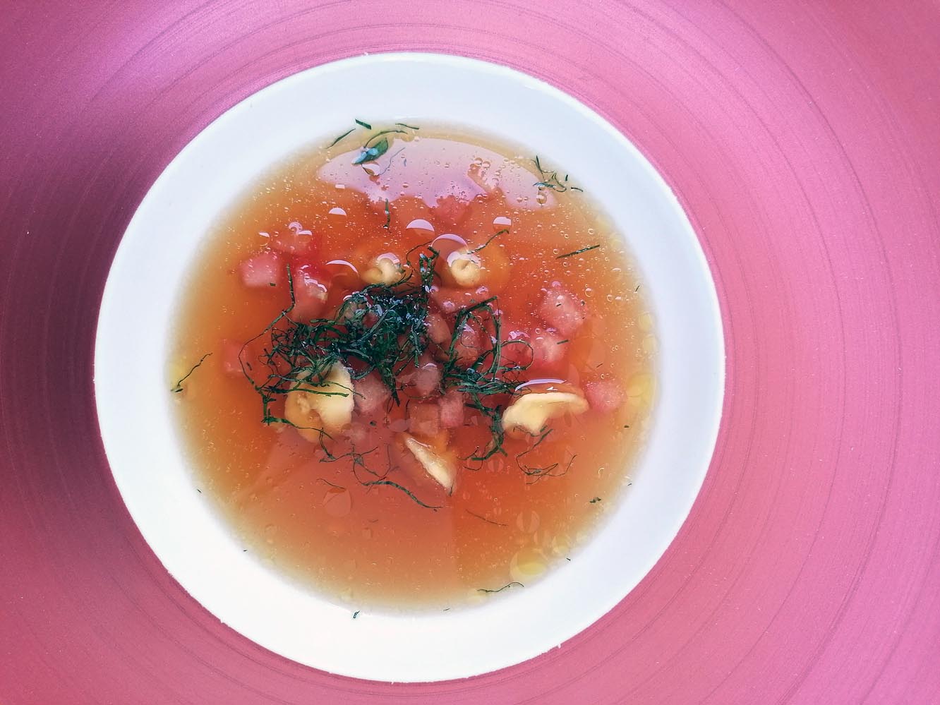 Das anlässlich des 10-jährigen Jubiläums des ARCOTEL Castellani kreierte Menü startet mit einem Tatar von der Bachforelle von „Fischmagier“ Grüll aus Grödig, Frühlingssalat und Rhabarber. Zum Zwischengang bringt die Tomatenessenz mit hausgemachten Ricotta-Tortellini die für das Restaurant Salieri typische mediterrane Note ins Menü. Der 2023 Grüne Veltliner - Hauswein und Gästeliebling - passt perfekt zum gut ausbalancierten Süß-Säure-Spiel der Suppe.