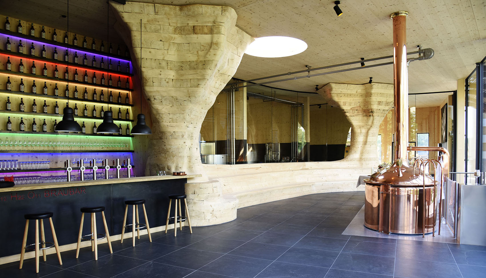 Die Tradition des Bierbrauens lässt Stiegl in einer weltweit einzigartigen Kombination aus Mälzerei und Rösterei und in der 1. Vollholzbrauerei Österreichs wieder aufleben. Bei der Errichtung wurde die Holzbaumethode von Erwin Thoma angewendet, die ohne Leim und Metallverbindungen auskommt. "Die Vision lautet, Dinge wie Werthaltigkeit und Kreislaufwirtschaft sicht- und erlebbar zu machen", erzählt Architektin Christine Sachs- Kapsreiter.